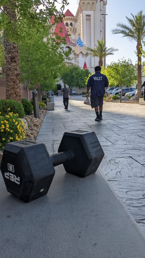 - Pack your own stuff. I typically bring a pair of dumbbells with me on trips so I can still get some weights in.