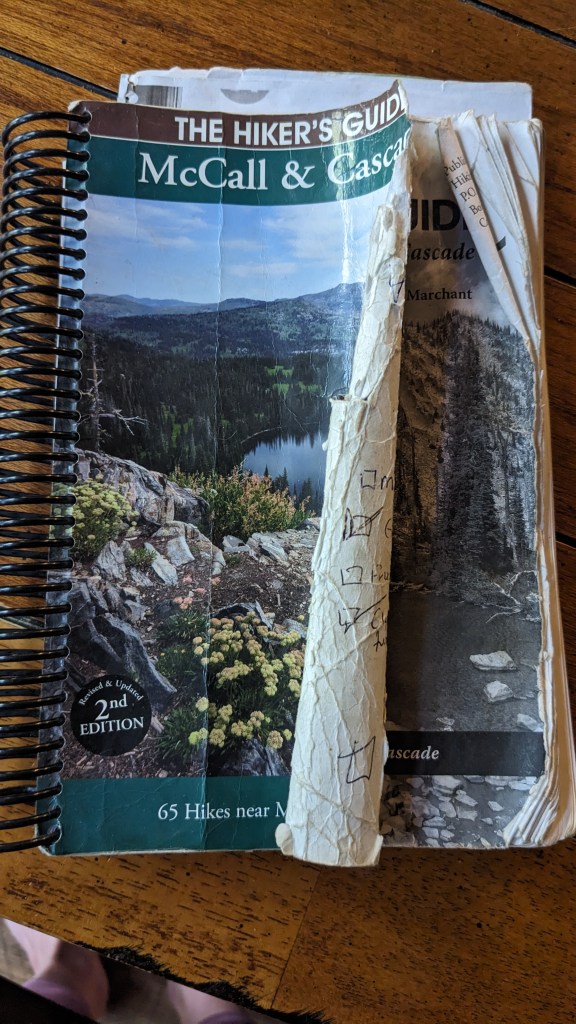 - When I moved to McCall six years ago the first thing I did was buy my beloved hiking book, The Hiker’s Guide to McCall & Cascade by Scott Marchant, pictured above. This book is so well loved I had to take it in to get it spiralbound because pages were falling out.
