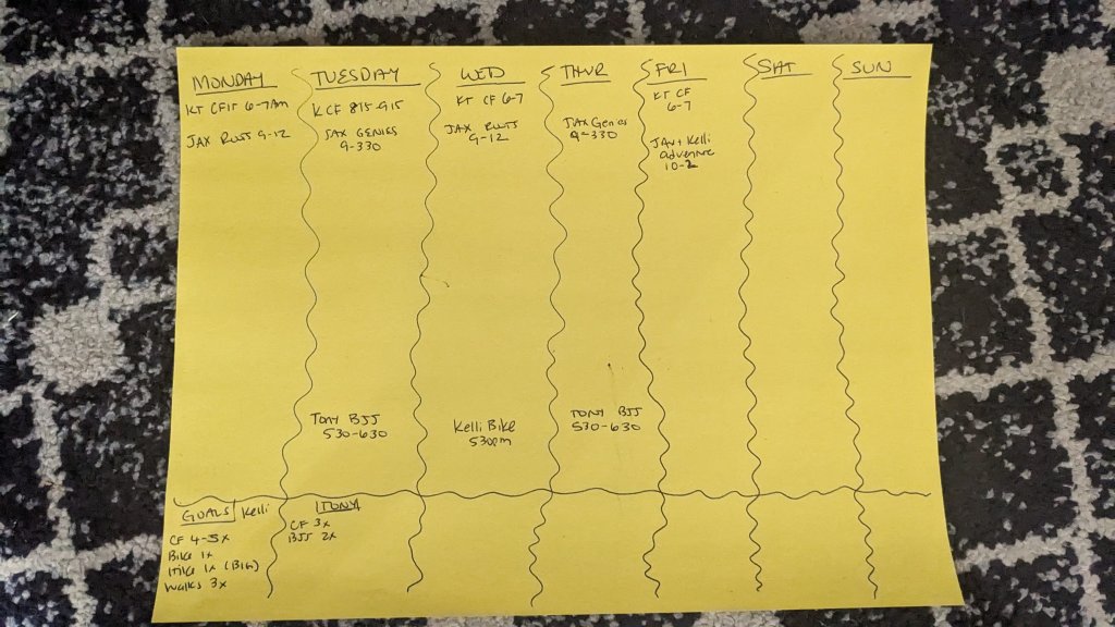 - My hubby and I sit down at the start of each season and talk about our daily vitamins and how we can fit them in. We literally map out our schedule (see picture above of our start template) and start filling it in. We do this seasonally because each season it seems our life changes from the different hobbies we do (skiing versus biking), to kids’ sports, etc., so we adjust according to the season.